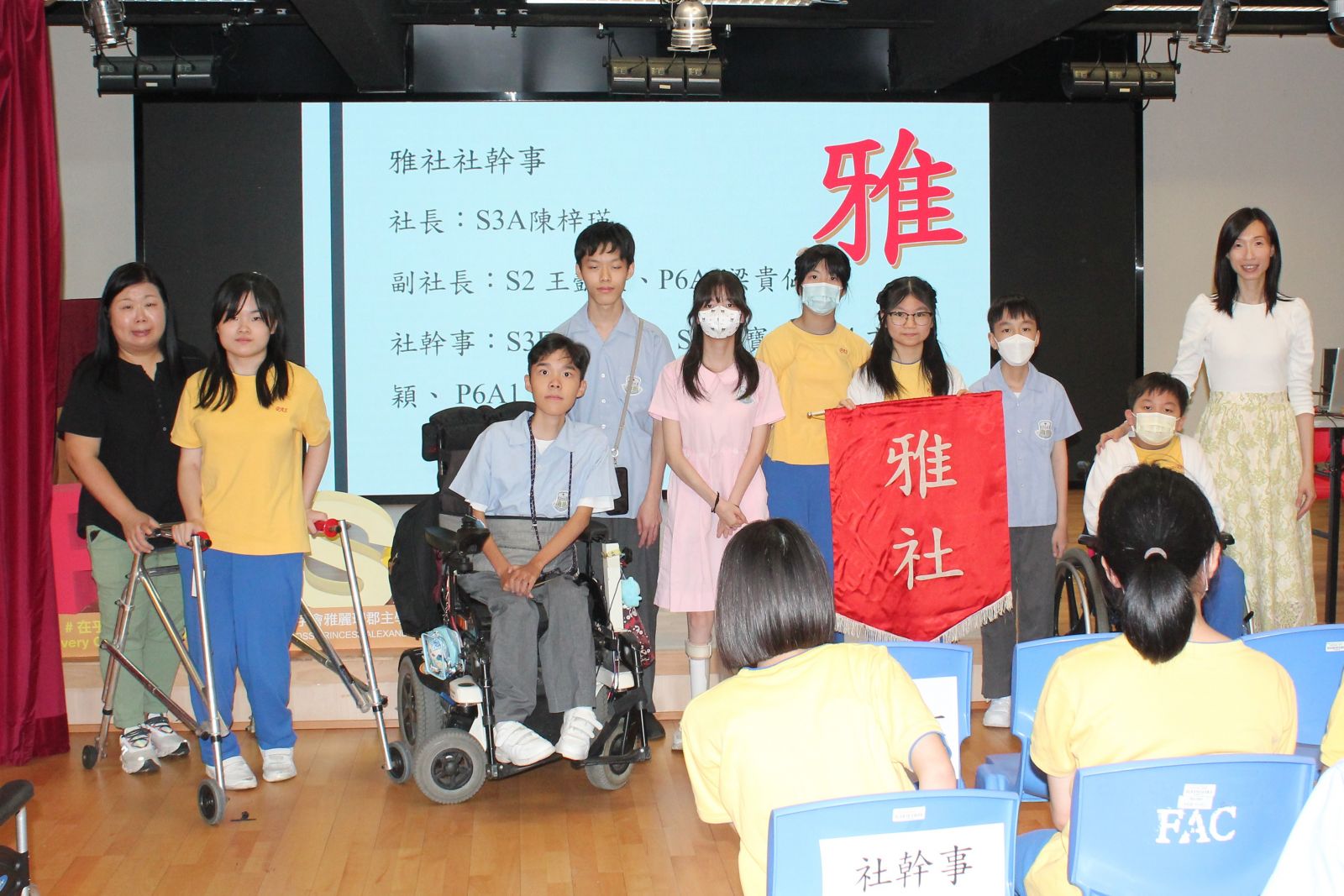 本校以「雅、麗、群、英」為四社名稱,四社分別以紅(雅)、黃(麗)、藍(群)、綠(英)四種顏色作為社的顏色。學生及職員在加入本校時會被編入不同的學社。 社際的建立是希望同學可以打破班級的局限,加強不同年級同學之間的聯繫,以發揮各年級之間互助、合群、友愛和團結合作的精神。此外,每學社由兩位老師作為社顧問老師以協助組織學生參與有關社際活動及幹事會籌辦活動。 社長、社幹事均由學生擔任,以培養學生的領袖才能。各種社際活動和比賽,可以增加學生對學校及社際的歸屬感。不同部門及科組的同事,為學生設計不同的社際活動,務求讓學生透過活動加強學生對社籍的認同。 社際活動採積點制,計算原則按各項活動中各社名次而決定,學期終結時,累積積點之多寡將判別該年度的各社名次。每年結業禮上頒發社際總冠軍。