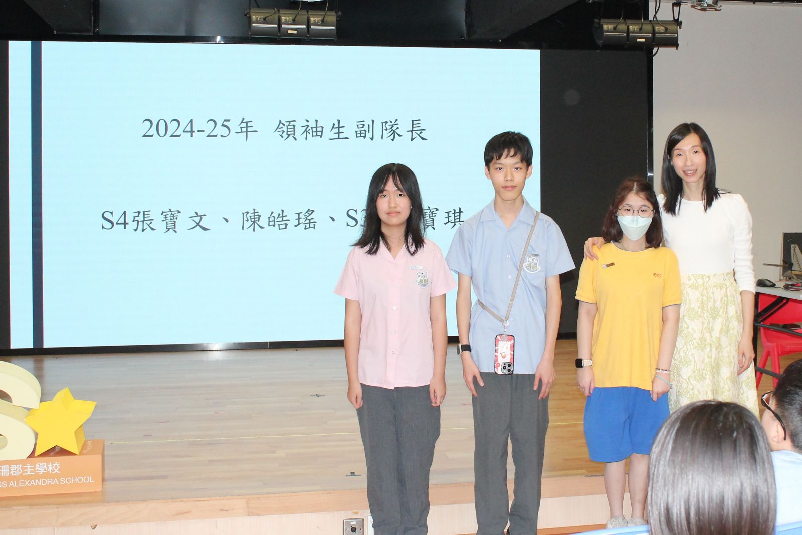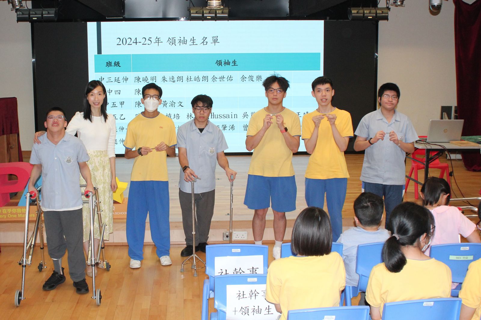 「領袖生服務團隊」主要在小息時承擔管理及照顧低年級同學的職責,在領袖生隊長領導下積極投入工作,協助同學守規,並建立自動自覺、自律及亙助合作的精神。「領袖生服務團隊」由隊長負責編排和調配值勤崗位,評估各隊員的表現,並且帶領各領袖生進行工作表現自我評估,藉此交流經驗及改善工作。