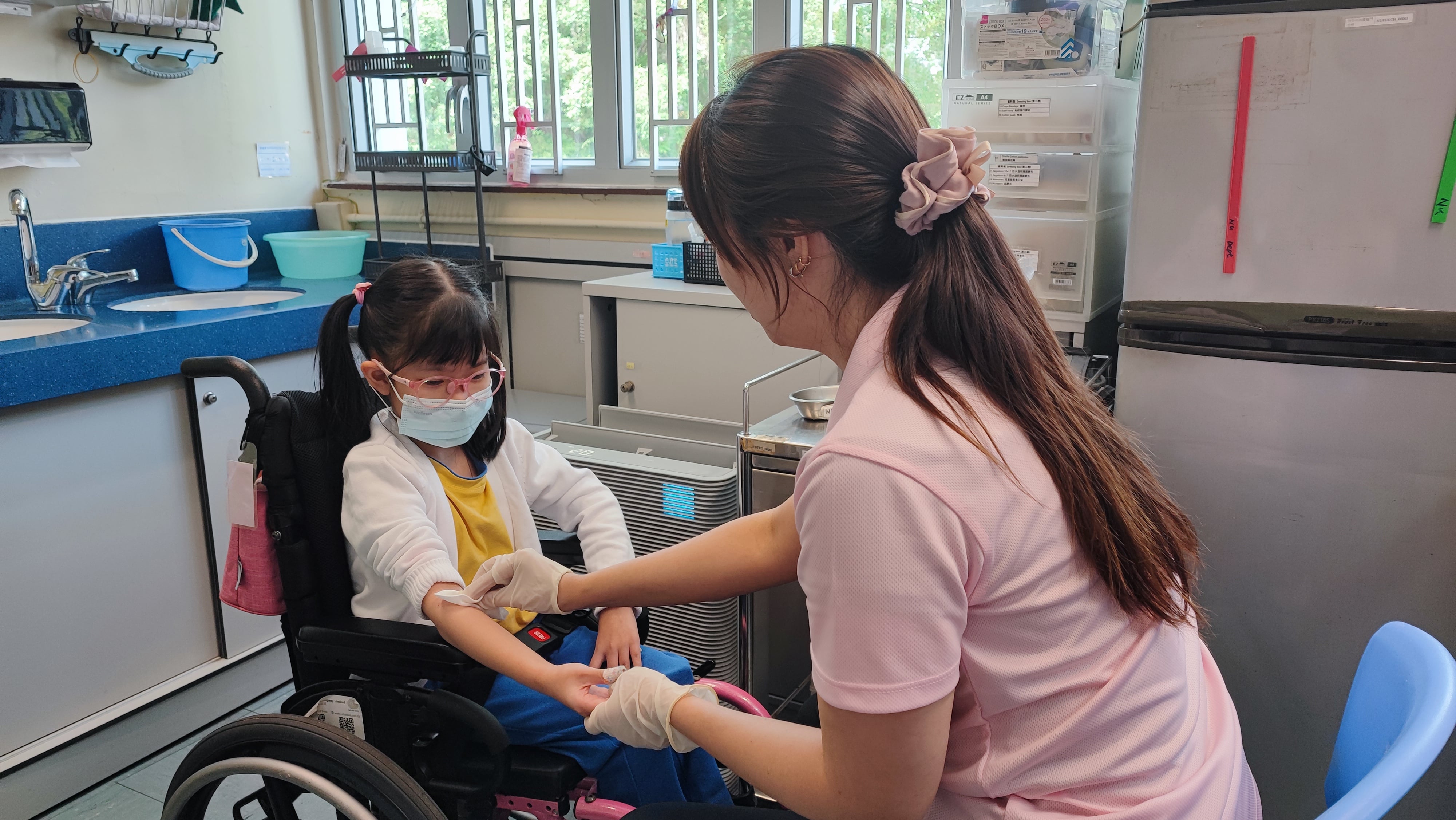 - 為學生提供優質的日常護理、餵飼及急救服務、包括午間派藥、胰島素注射、經胃造口餵飼糊狀食物及傷口換症服務等。