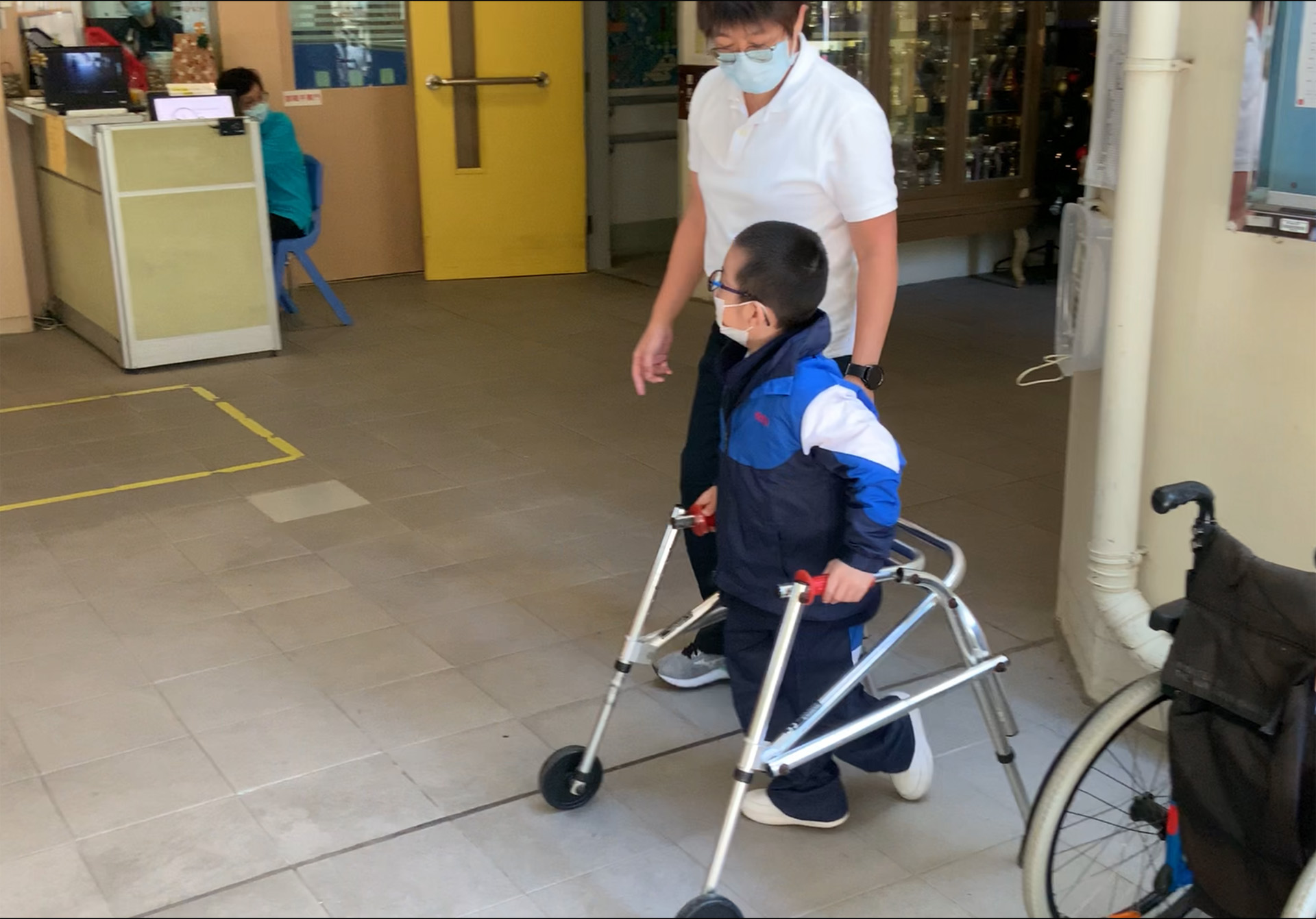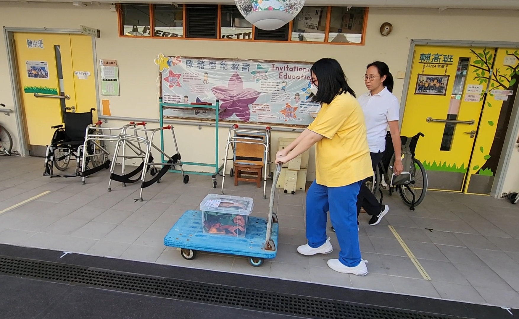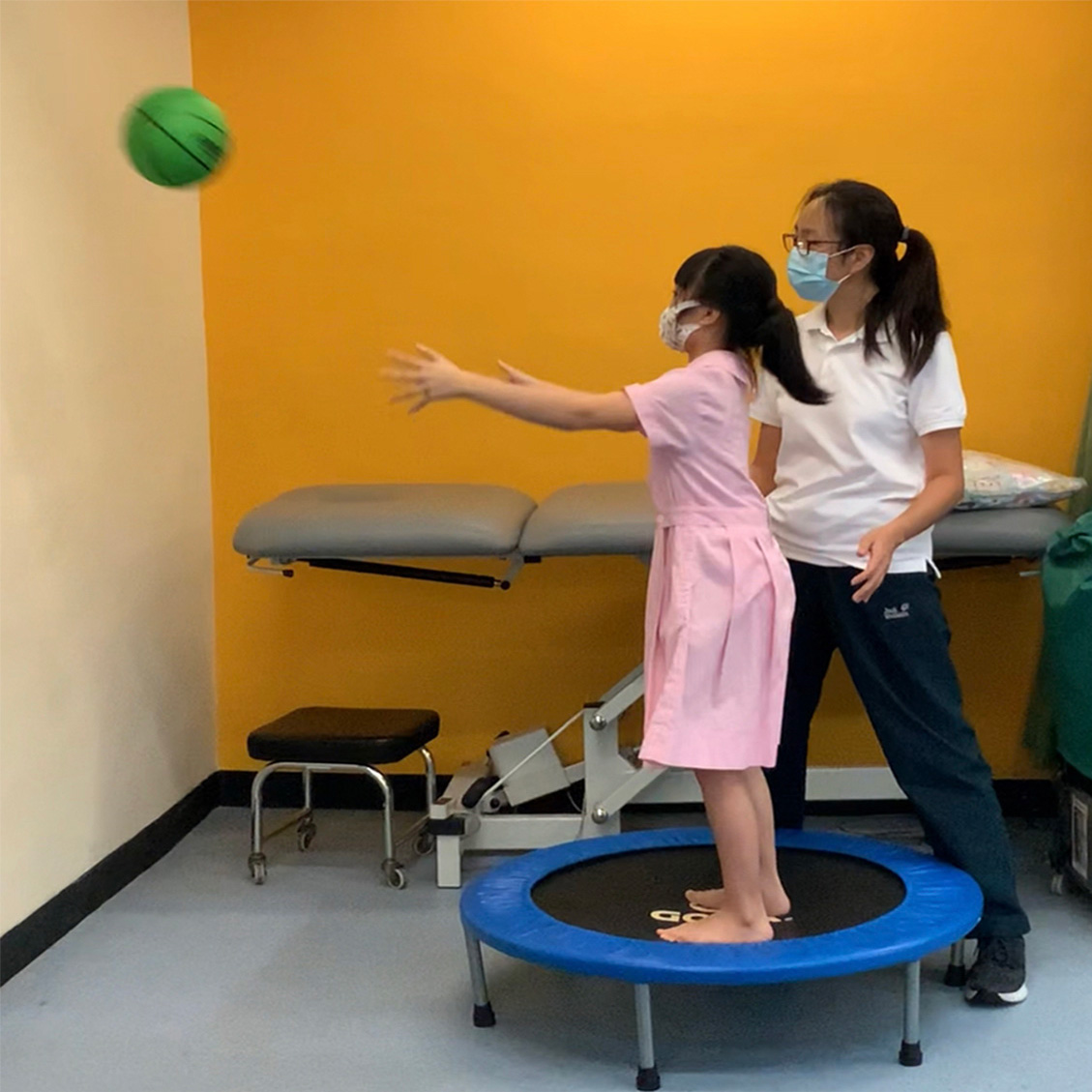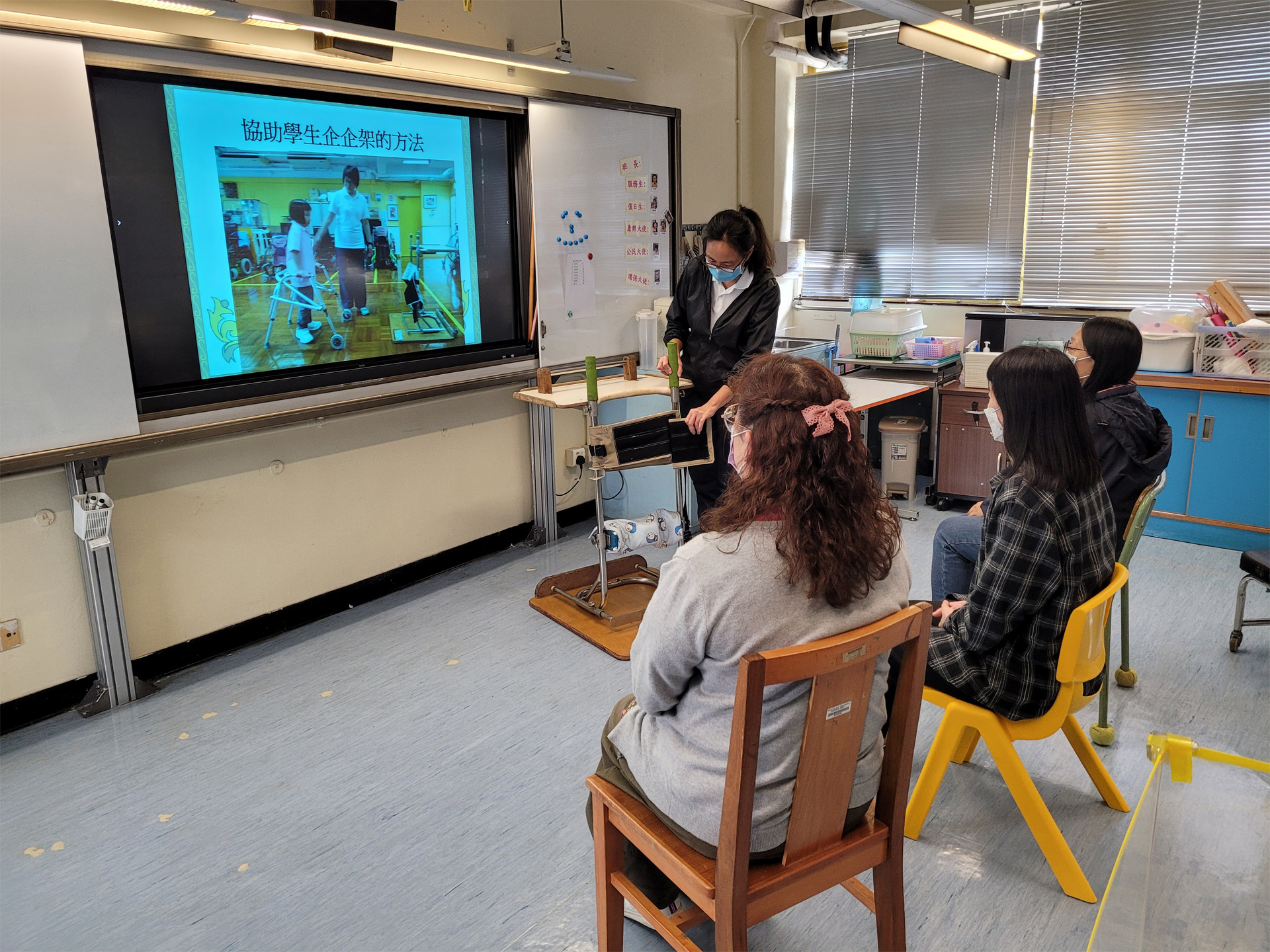 透過貫通式團隊協作模式,與老師及各專業同事共同訂定學習或活動目標,將訓練融入於部份班級的早操、體育、生活技能課、工作體驗堂、健康生活與社會關懷堂及體藝活動內。亦參與設計整日的生活流程,融入物理治療元素,使學生時刻都有接受治療的機會。