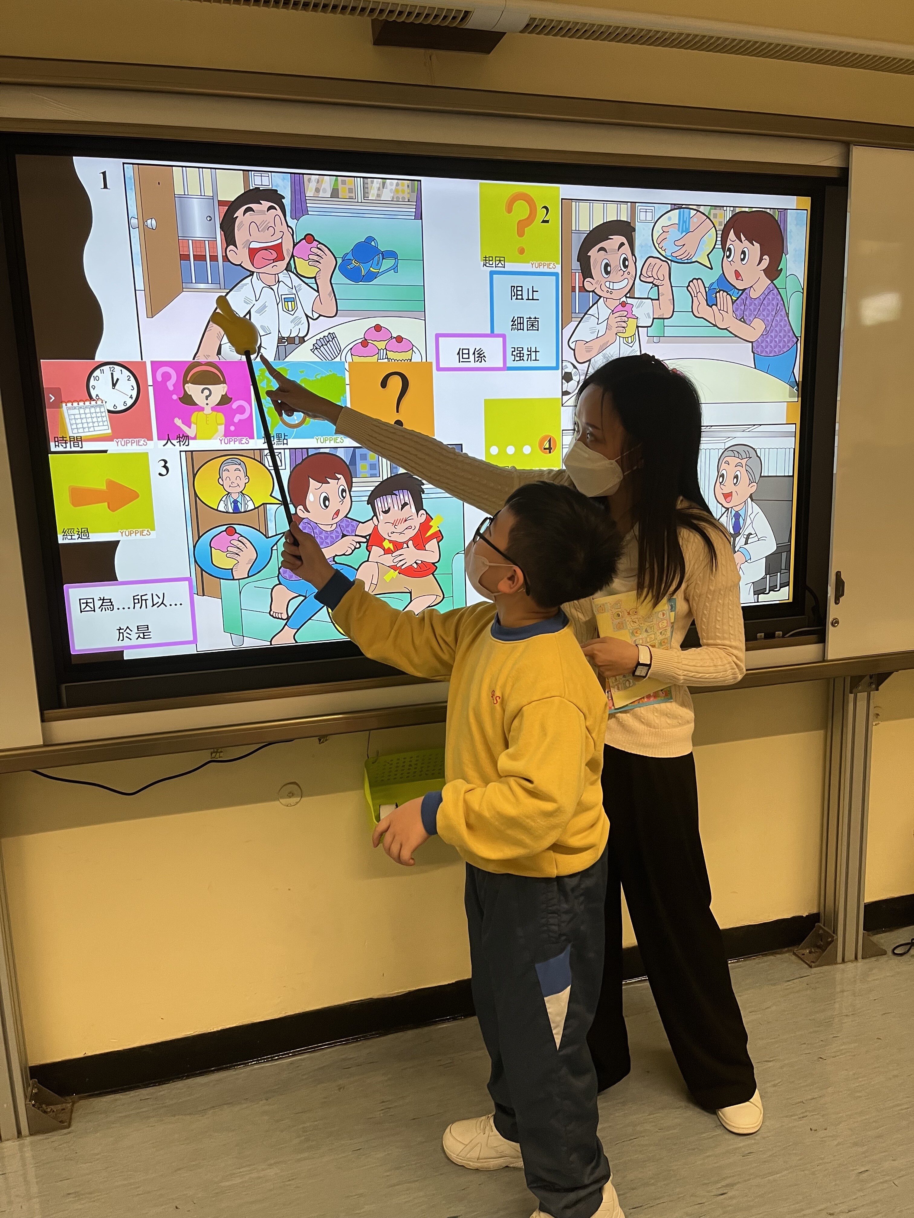言語治療師與中文科老師共同備課,於中文科說話堂中協助學生達至課堂中口語理解及表達之目標。