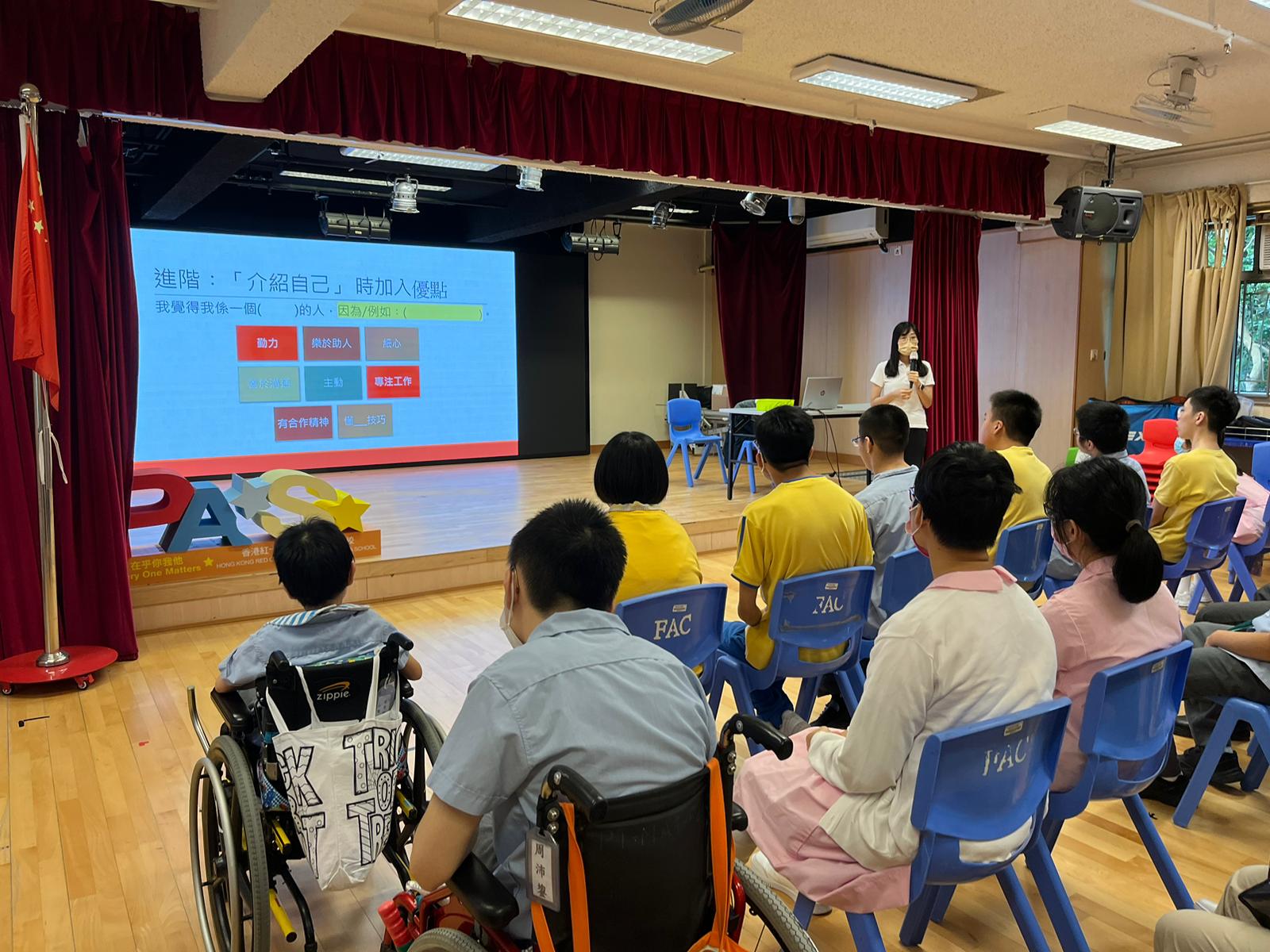 言語治療師於工作體驗訓練堂教授學生工作面試的基本溝通技巧。