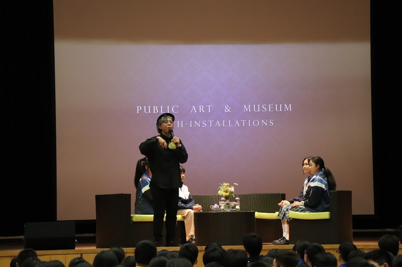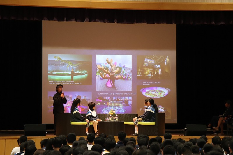 黃校友不僅分享他過往三十多年在電影數碼CG特效的工作,同時也分享他近年為香港故宮文化博物館、香港科學館、維港海濱公園及大館等,運用創新科技創作的大型多媒體立體藝術裝置,令師生們嘆為觀止。
