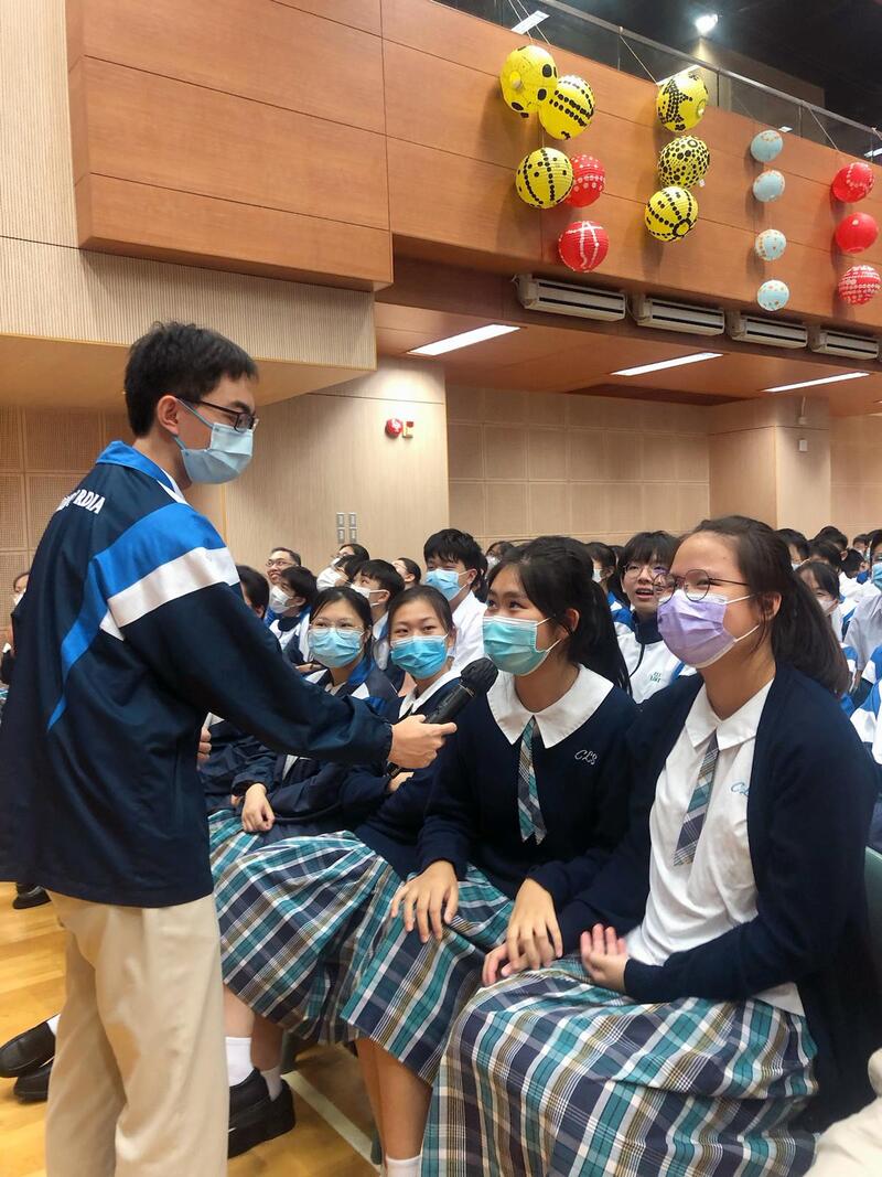 最後,由中一同學——「小宏達」代表全校學生向師兄致送紀念品,真正體現「承傳、創新」的精神。