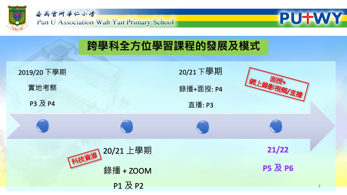本校自搬遷校舍至港島東區後,一直致力透過跨學科全方位學習活動,利用新的社區資源有利條件豐富學生的學習經歷和效能,讓學生應用、延伸及深化所學,把學習空間從課室伸展至社區,透過接觸的人、環境和情境,親身獲得一般在課堂上難以體會的經驗。