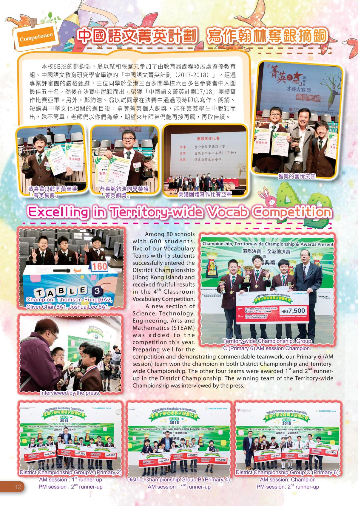 1.1 精通中文(包括廣東話和普通話)和英文,能清楚地表達自己和有說服力,並有閱讀中英文讀物的習慣。