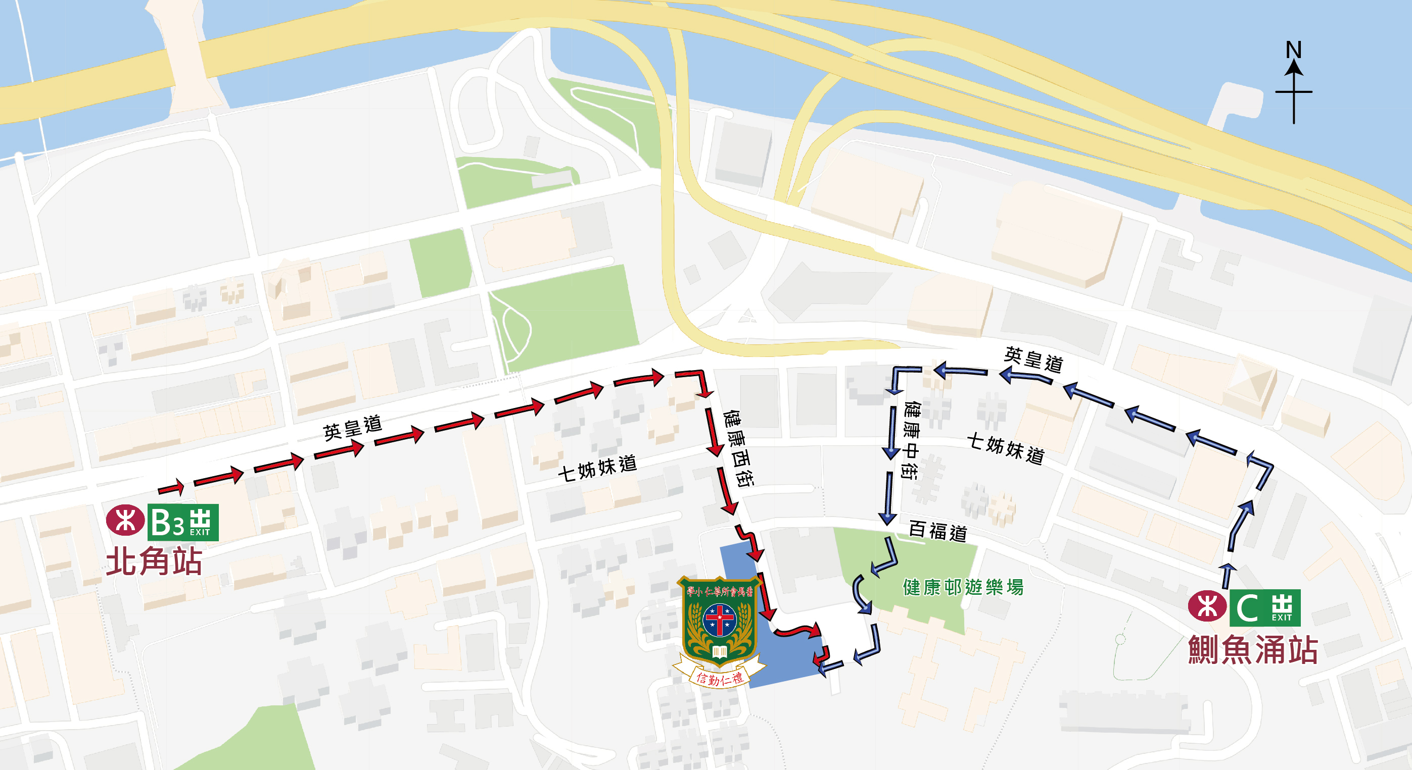 鰂魚涌港鐵站(鰂魚涌站C出口) 或北角港鐵站(北角站B3出口)