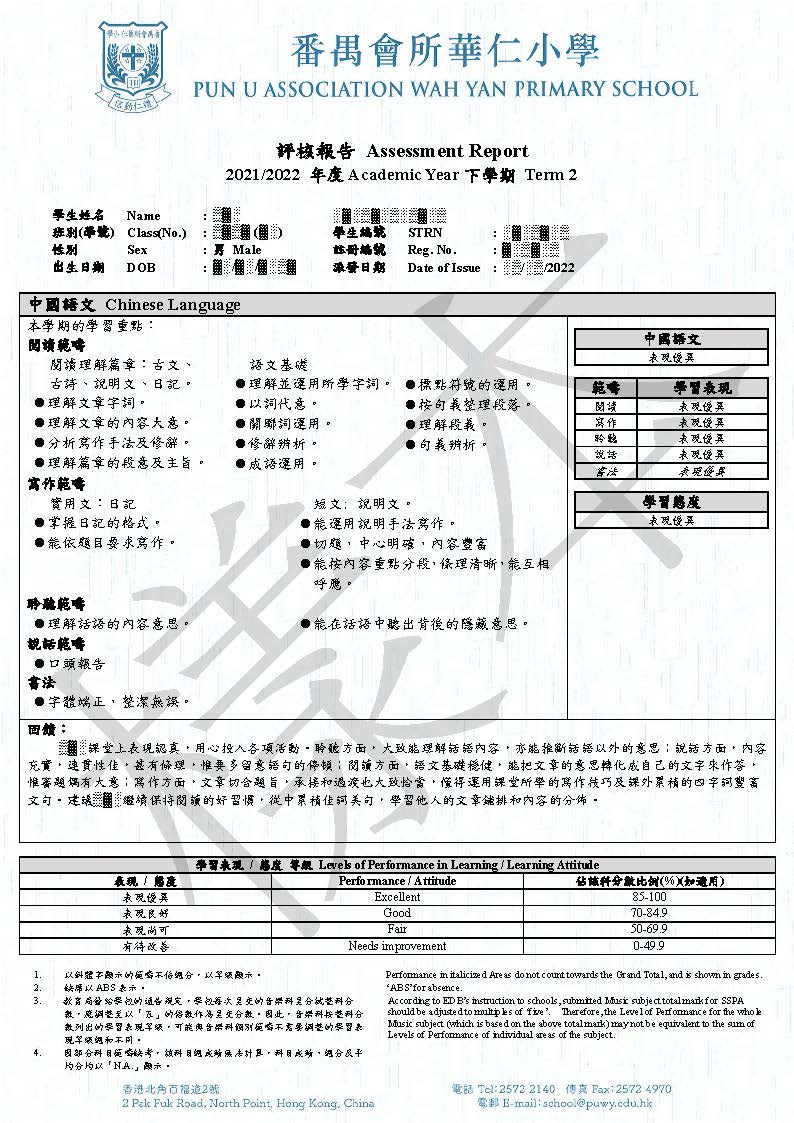 - 一年級上、下學期及二年級上學期,均不設考試。各級總結性評估的安排如下: